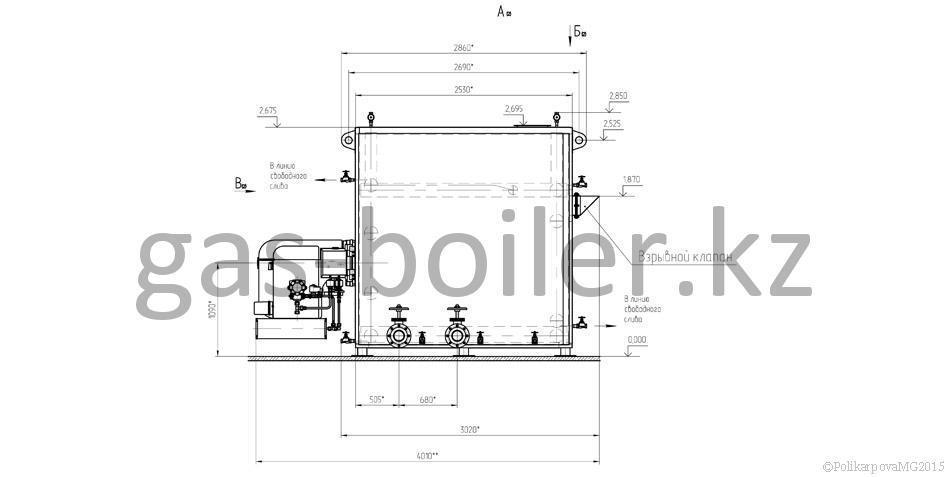 Котел поставляется максимальной монтажной готовности. Котельный блок устанавливается на ровную поверхность, подключается теплоноситель, горелка, настраивается автоматика, КИП и запорная арматура, сверху подводится газоход. Котлы с импортными горелками работают под наддувом. С некоторыми отечественными горелками вам может потребоваться установка дымососа.