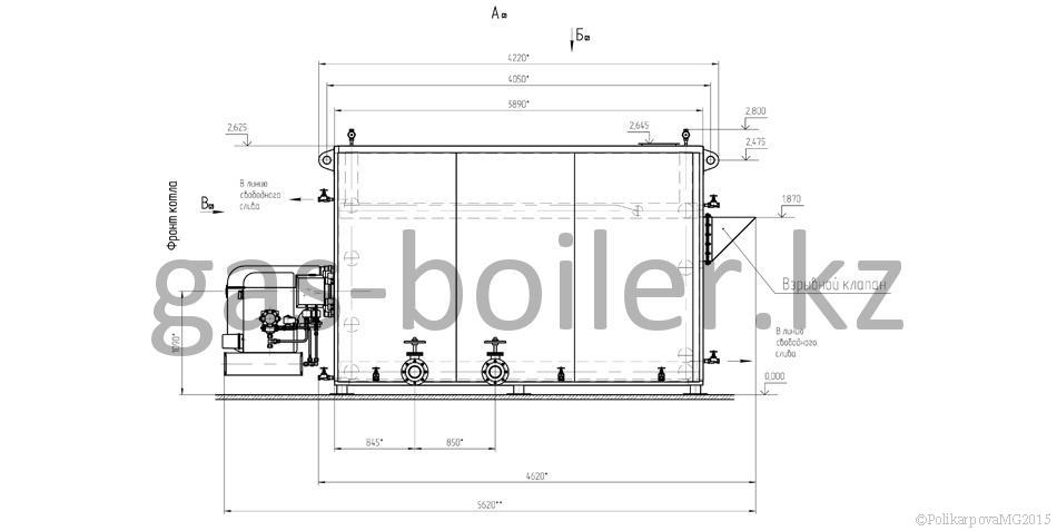 Водогрейный газовый котел 2 МВт работает под наддувом, обеспечиваемой газовой горелкой. Вид сжигаемого топлива: газ, возможно изготовление данной модели котла для сжигания дизельного топлива и мазута.