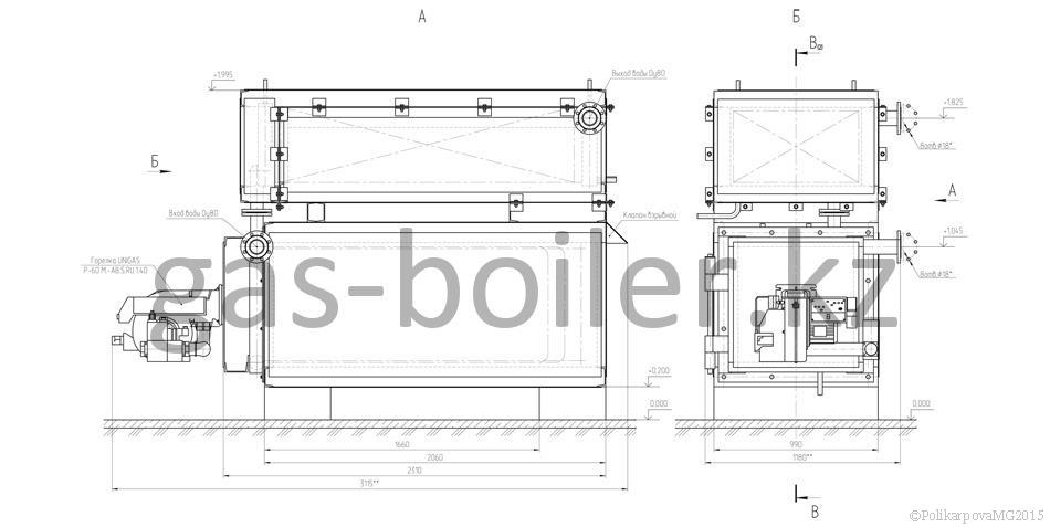 Водогрейный газовый котел 400 кВт работает под наддувом, обеспечиваемой газовой горелкой. Вид сжигаемого топлива: газ, возможно изготовление данной модели котла для сжигания дизельного топлива и мазута.